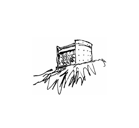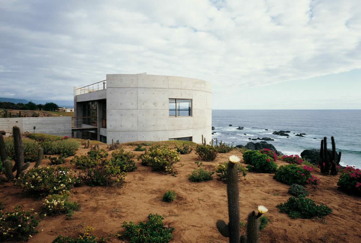La voluntad arquitectónica es la de la resta, así se opta por construir un círculo de hormigón a la manera de un pozo. El gesto arquitectónico es un círculo, atravesado por una recta, que se traduce en el acceso a la casa y la división del espacio público del privado. La complejidad de la resolución espacial radica en la intersección de dos órdenes: el circular envolvente versus la regularidad ortogonal. Donde el círculo dialoga con el entorno exterior en forma sintética, para no hacer aparecer una nueva tipología constructiva, sino más bien el ícono de un estanque de agua.