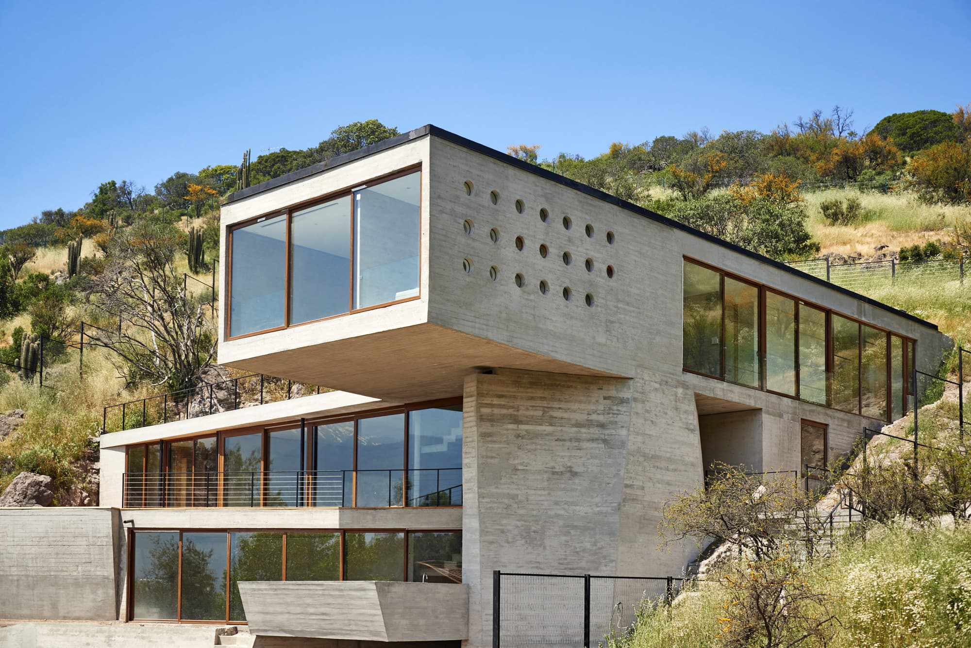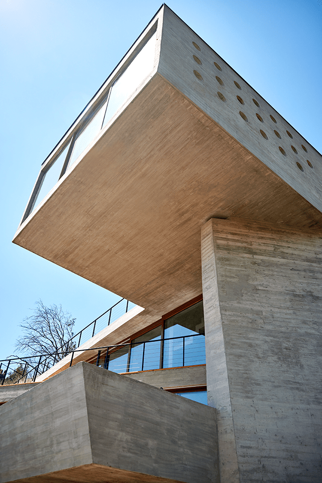 During the first decade of the millennium, Cazú Zegers incorporates a way of naming projects based on the alphabet. It is the alphabet of the poetic word, and with this, a series of houses that are the abstract synthesis of a letter that becomes a work. It has to do with the creation of reality through language. Each 'letter house' has a unique dialogue with the landscape, a territorial conversation where the work is a unity between landscape and architecture. The K House emerges on an urban site with a strong territorial presence, located in the last developed plot of the Lomas de la Dehesa Condominium. The challenge was to create a work that minimally invaded the place, where architecture fused completely with the landscape.