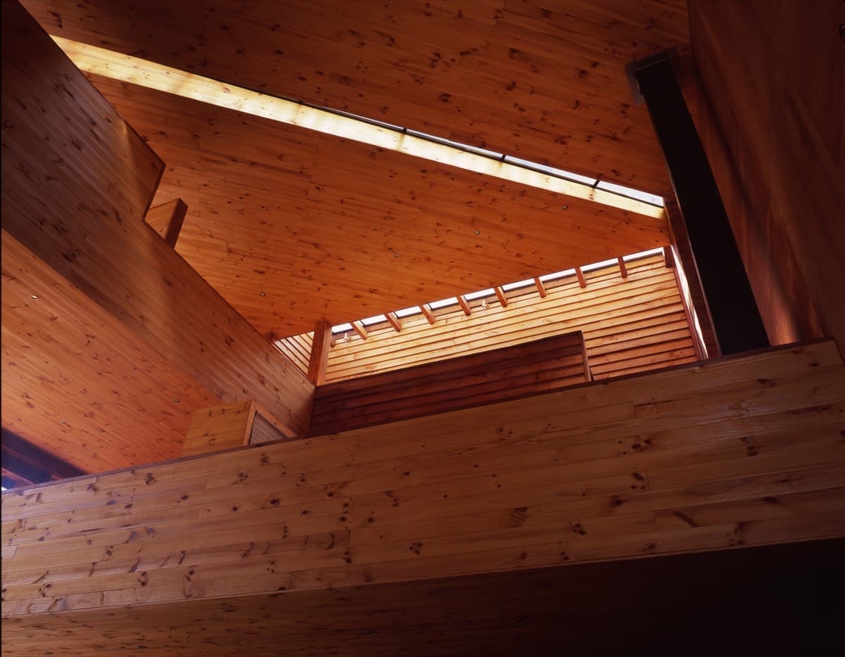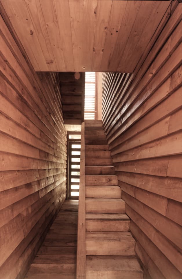 In the middle of the forest, a clear and outlined volume emerges, which immerses itself in the landscape. This is not just any cube, it is a cube with a 9-meter edge, which houses in its triple-height interior void the life and craft of an artist.
